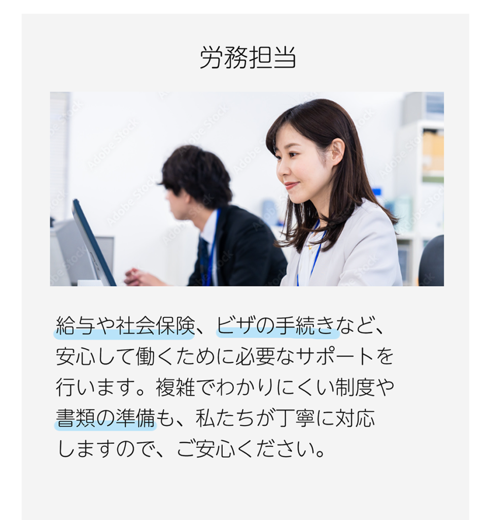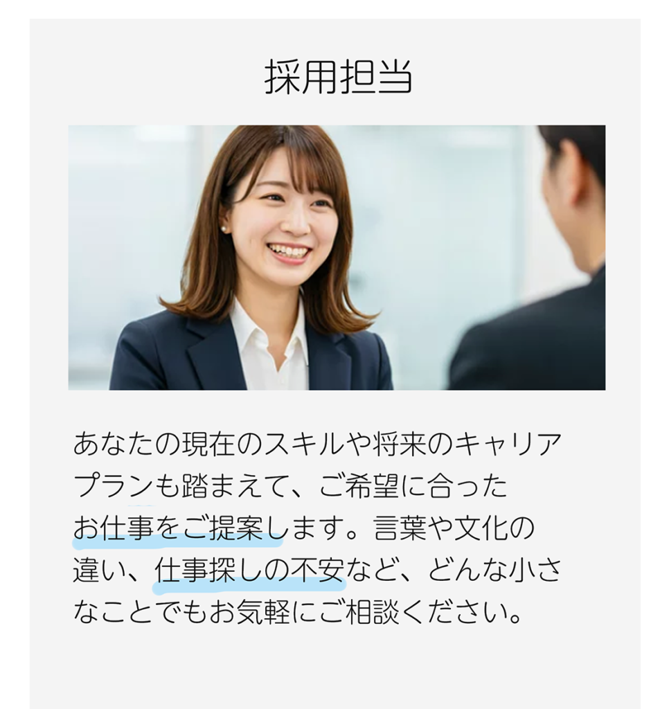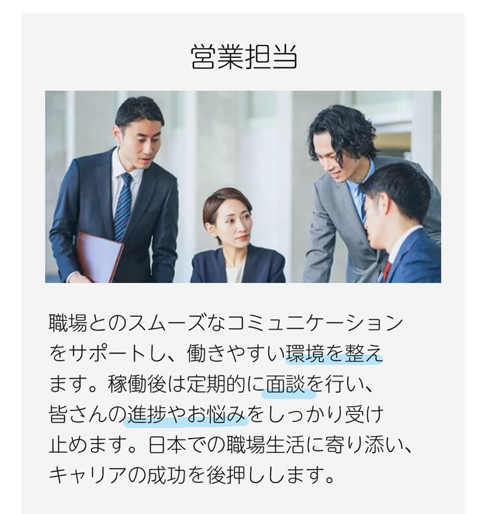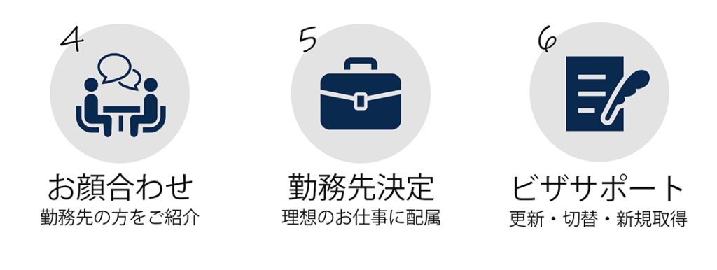 A.これから入社予定の方で在留期限が2ヶ月未満の方はビザサポートの対応はできかねます。すでに弊社で働いて頂いている方は2ヶ月前からビザ更新の準備について会社から連絡をして進めます。